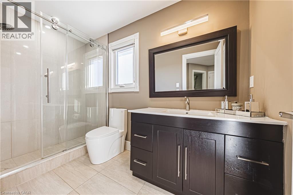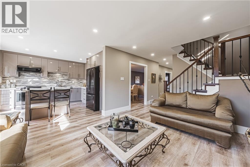 Welcome to beautiful Broughton, a lovely and highly sought-after neighbourhood in the Hamilton Mountain. Close to parks, hwy, great schools, shops, and all the amenities you need. This gorgeous house has great curb appeal, large concrete driveway, attached garage, wonderful neighbours, a place you will be proud to call home! When you enter inside, you are immediately impressed with the high-end large tiles and hardwood flooring throughout, given you a sense of elegance and sleek modern living. You will find a welcoming living room and formal dining room that flows together perfect for entertaining guests. The real showstopper is the breathtaking kitchen with fabulous glossy cabinets, granite countertops, a beautiful island and high-end appliances. The family room gives you sense of sophistication with its modern design, upgraded staircase, cozy fireplace, large windows and a sliding door to give you lots of natural light and flow to the backyard. Entertain guests with the large and clean set up backyard with an upgraded fence. Upstairs you will find three great sized bedrooms and a luxurious bathroom that looks like it is from a magazine. In the lower level, you get to enjoy a large rec room, another bedroom and another beautifully renovated bathroom and large laundry room. This house has been completely renovated top to bottom with amazing workmanship and high-end finishes throughout. Roof, windows, furnace, AC, flooring, pot lights, kitchen, bathrooms, trim, doors, everything been done for you, book a viewing today and fall in love! (id:58062)