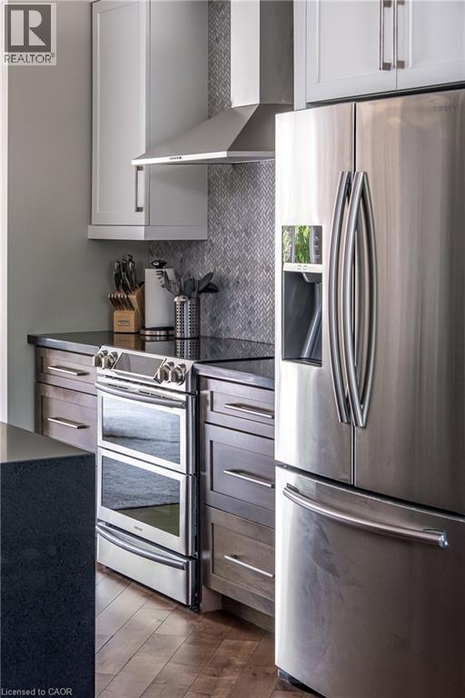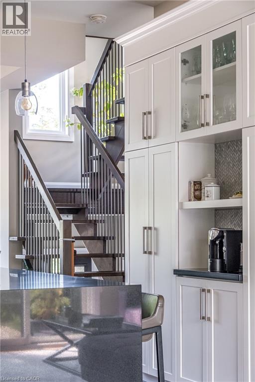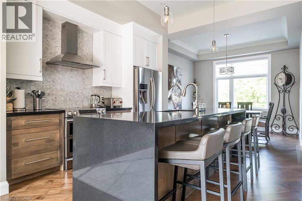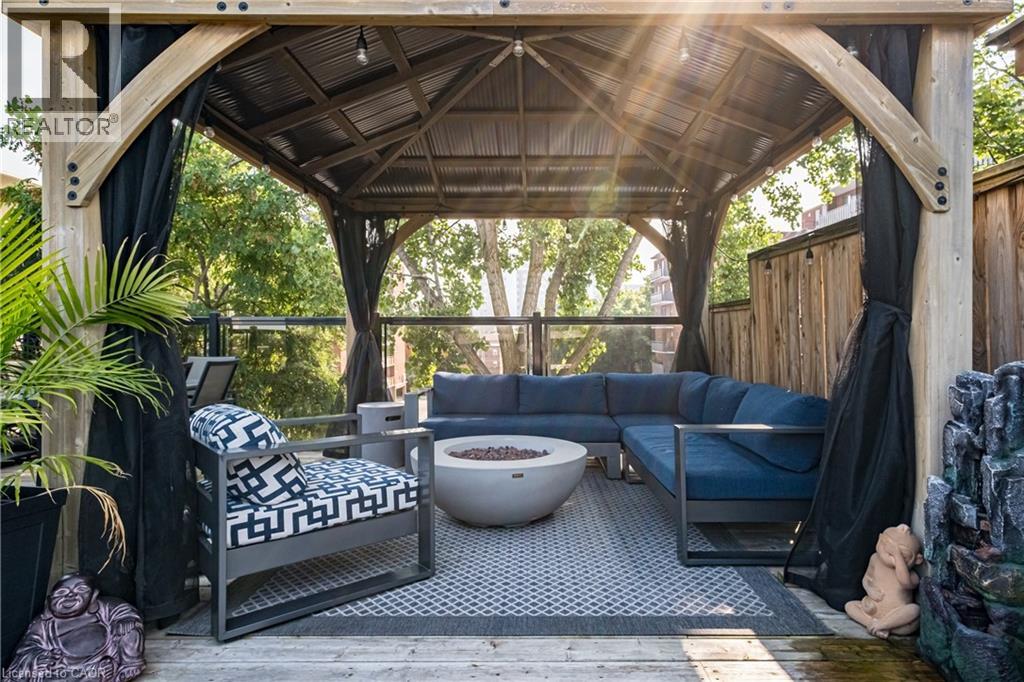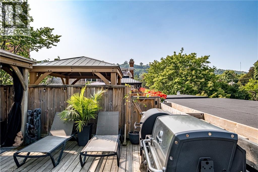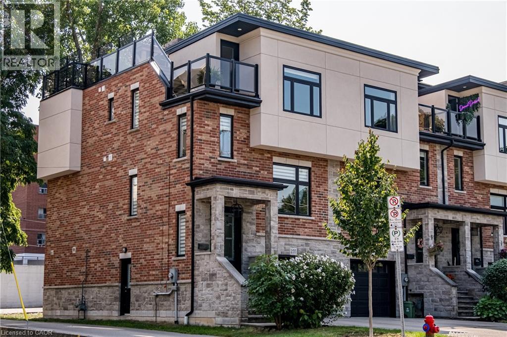 Stunning executive freehold town located in the heart of the Durand neighbourhood. This gorgeous multi-level end unit is flooded in natural light and impresses from the moment you enter, with polished porcelain tiles, rich hardwood flooring, floating staircases, crown molding, and pristine finishes. The open concept main floor features a formal dining room, a gorgeous gourmet kitchen with stainless steel appliances, 9 ft island with black granite waterfall edge countertop, and tons of cupboard & pantry storage. The oversized family room is perfect for entertaining with sliding glass doors to a balcony to enjoy your morning coffee. The sunny staircase leads to the 2nd level with 3 bedrooms and 2 full baths, including a spacious primary with walk-in closet and 5-piece spa like bath with quartz counters. Step up to the rooftop terrace with tree top views and private outdoor oasis with covered pergola sitting area to relax with a sunset cocktail, and bbq area to enjoy alfresco dining. The finished lower level features a den with sliding glass doors out to a newly fenced backyard with green space and patio. Stroll Durand Park right across the street, walk to James St. S, St., Joseph’s Hospital, perfect location for medical professionals, Augusta St. and its trendy new restaurants & pubs, or Locke Street S as well as schools, parks, churches & trails. Just minutes to Chedoke Golf, McMaster, the downtown core, public and GO transit and 403 make this home ideal for families or professional alike. RSA (id:58062)