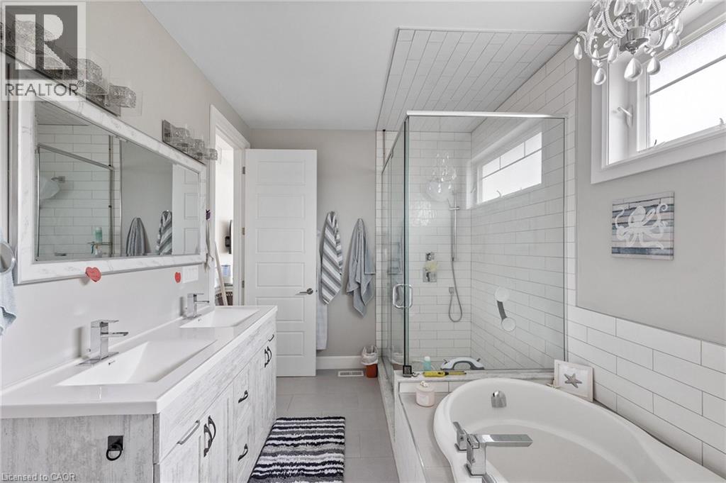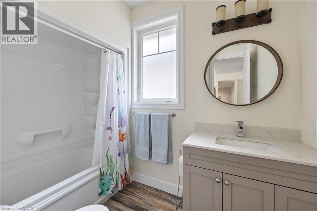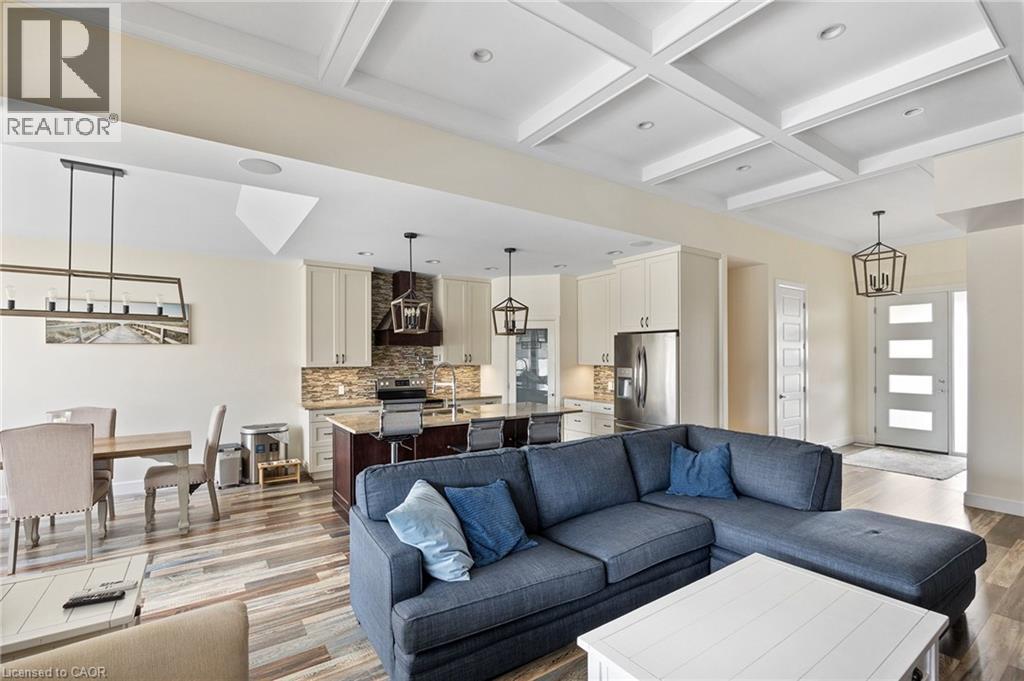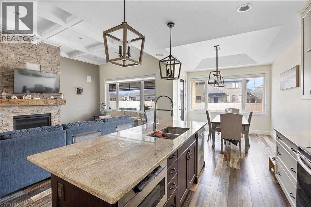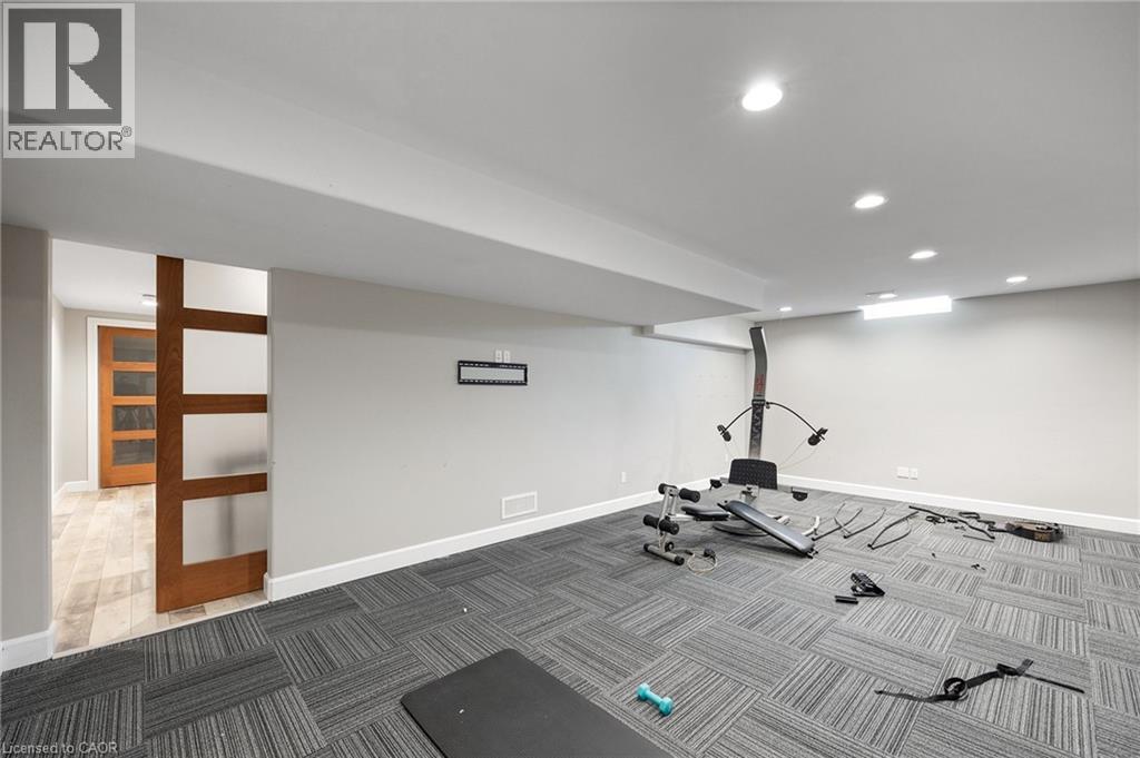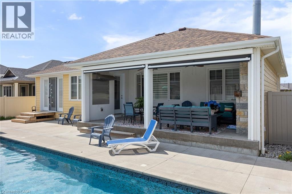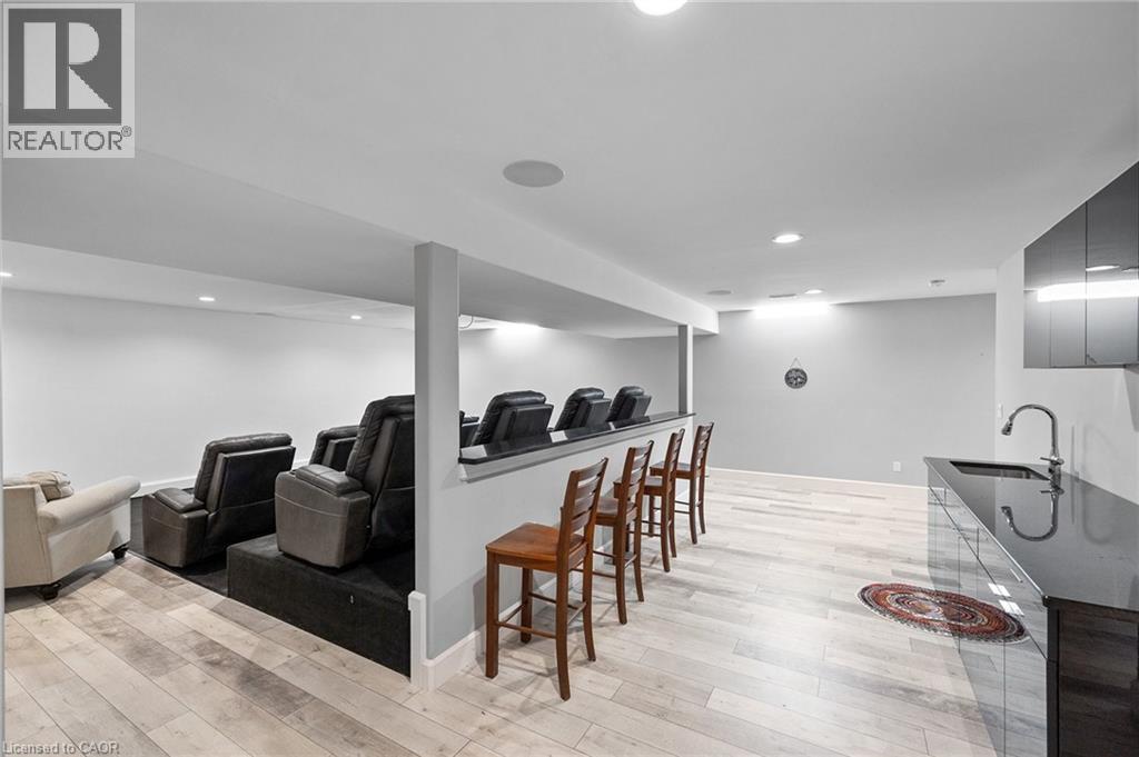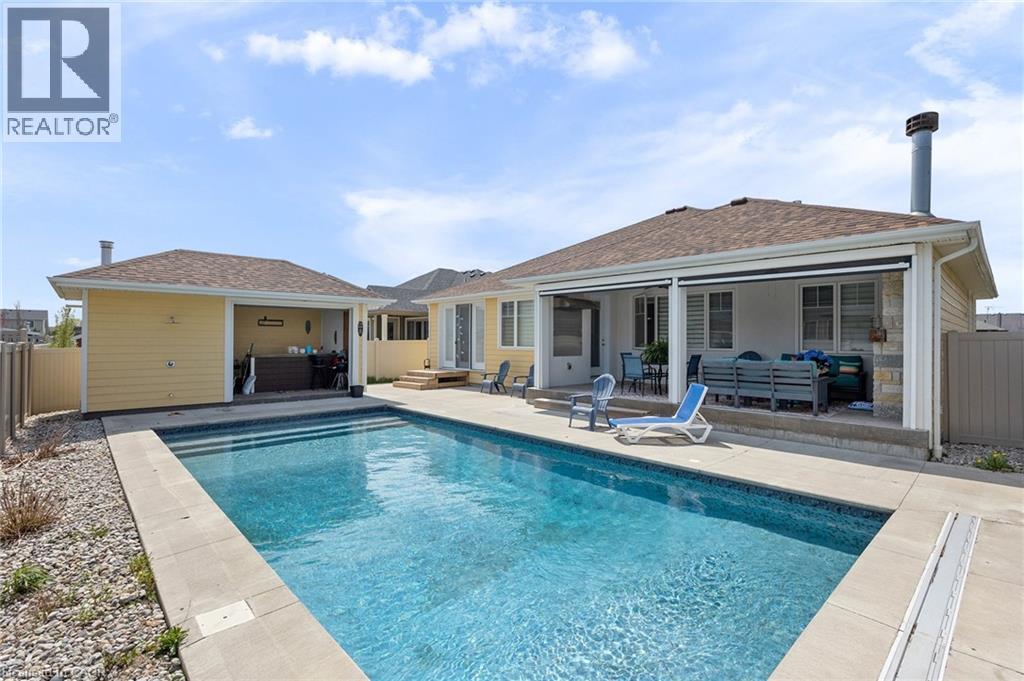 This home has surprises for your entire family! It features an entertainers main floor with an open kitchen/dining/living room. The kitchen features a large walk-in pantry, drawer microwave and has a large island for prep and entertaining. The living room has a beautiful gas fireplace and coffered 10 foot ceiling. You will love the engineered hardwood throughout the space. There are also 3 bedrooms, 2 full bathrooms and laundry room on the main level.. The Primary bedroom has French doors to the back deck area. The ensuite bath has a walk-in shower, large soaker tub and walk-in closet. The basement area has a media room with projector, multi-level seating and wet bar. Work out in your own gym with mirrors and sound system. This level also has a 4th bedroom and 3 piece bathroom. When you walk out onto your fabulous enclosed deck with wood burning fireplace and drop down screens you won’t be able to resist jumping into the inground sports pool. There is also a bar shed with 2 piece bathroom and outdoor shower. This home is perfect for an active family! (id:58062)